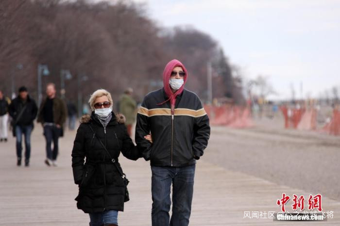 當地時間4月11日,復活節假期,加拿大多倫多市民佩戴口罩在湖濱公園散步踏青。中新社記者 餘瑞冬 攝