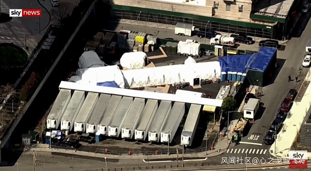 冷藏卡車停在紐約某醫院門口作為臨時停屍房(圖片來源:SKY TV截屏)