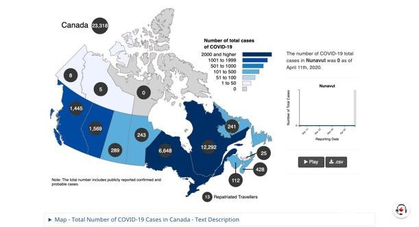 (4月11日,加拿大疫情圖 來源:加拿大政府網截圖)