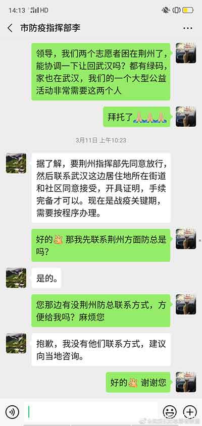 再比如説,我們幫助患者入院的時候,不可避免的接觸很多政府官員。在初期,我恨他們恨的咬牙切齒,認定了他們不作為,懶政,推諉,冷酷!但是,隨着一次又一次的和他們接觸後,我看見了半夜4點接我電話安排病人的副區長,凌晨回我短信幫患者解決困難的省委領導,加班到深夜11點幫助我們幫扶的患者收取核酸檢測報告的衞健委官員,24小時有求必應的紀委督導組的領導,更別説那些無數次幫我們想盡辦法解決困難的普通政府工作人員了。我敢説,方方們看不到這些。因為,在他們眼裏,這個國家、這個政府、這些官員,存在的本身就是一種原罪!可我不能視而不見,因為我從他們身上看到了責任心和悲憫。