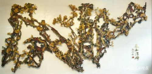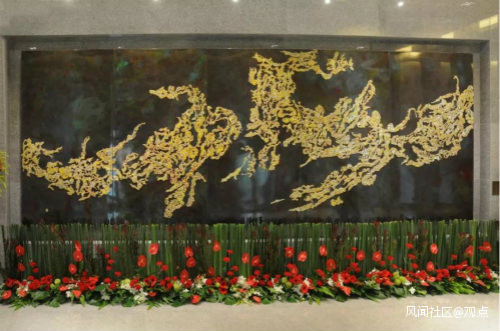 而在隨後的熔銅壁畫創作中,熔銅結晶體又如同生動、豐富、流暢的筆墨線條,深淺濃淡、層疊交錯。收藏在新加坡中國文化中心大堂主壁的巨幅銅雕壁畫《春和清妍》,高4.5米、寬8米,以中國傳統水墨方式,在大理石底板上用獨有的熔銅藝術鑄就了一片迎接春天的梅花。這也是朱炳仁大師繼曼谷中國文化中心熔銅作品《含熙》、莫斯科中國文化中心銅雕作品“雷峯塔”後,作品第三次被海外文化機構收藏。