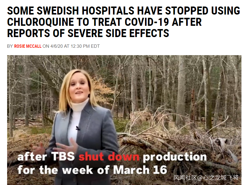 瑞典一家醫院的患者報告,在使用了羥氯喹後,出現了頭痛、抽筋、失明以及心臟病發作等副作用症狀。因此,瑞典數家醫院不得不宣佈停用該藥。