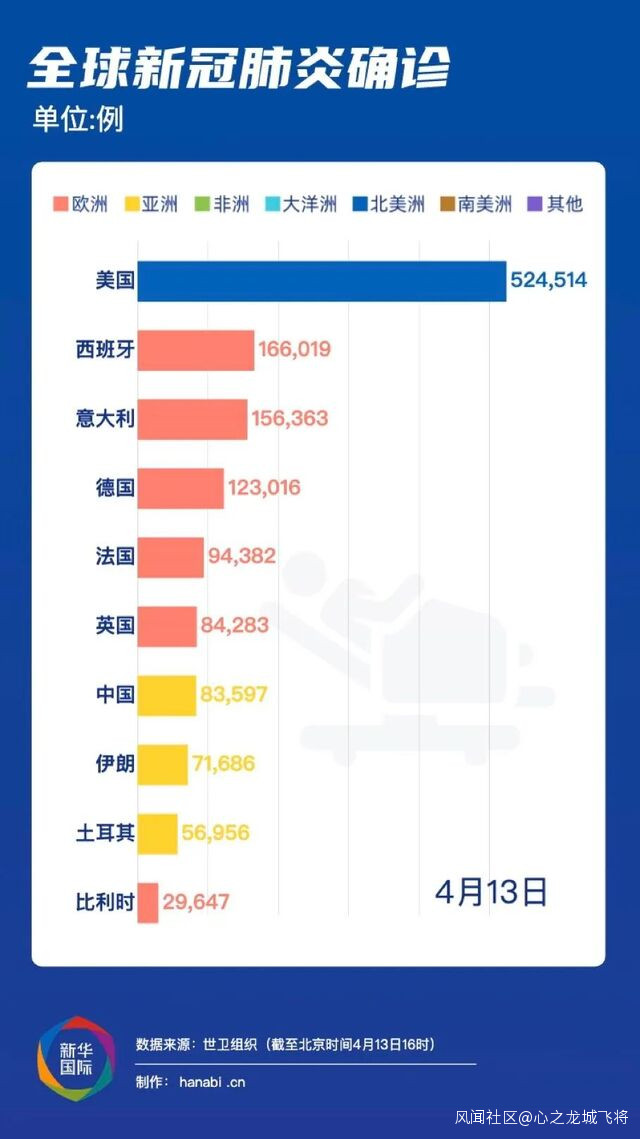 以世衞組織4月13日公佈的疫情數據為例,西班牙、意大利、德國、法國、英國、比利時仍名列歐洲確診病例最多的前列。不過,西班牙單日新增病例數為3月21日以來最低值,意大利重症病例連續第十天下降,法國重症病例和英國新增死亡病例均比前一日有所下降。德國累計治癒人數超過現存病例數。