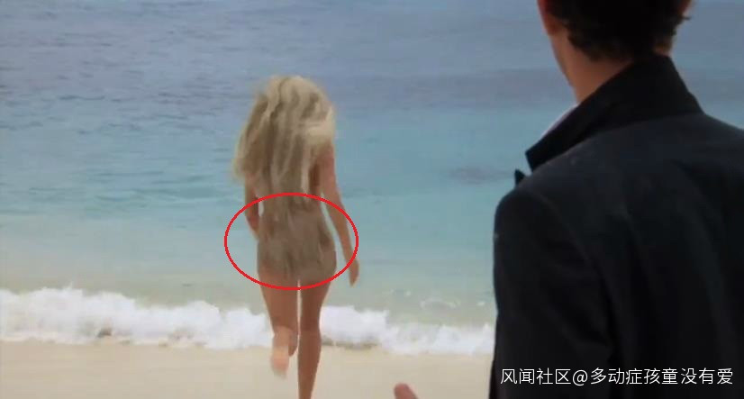 網友反映,被處理的是達麗爾·漢與湯姆·漢克斯在海灘上親吻,後又向海中跑去的場景。