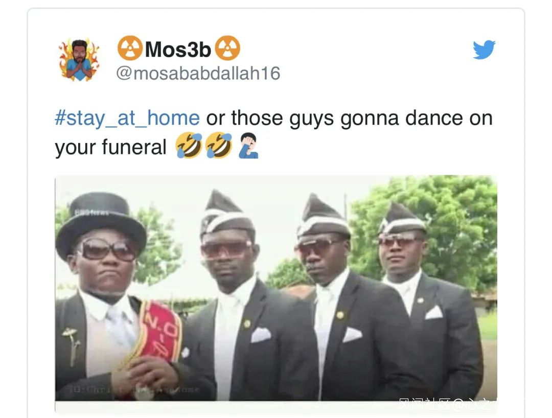 而又因為現在這個特殊的時期:“好好呆家裏,不然這些人就要去你的葬禮上跳舞了”↓