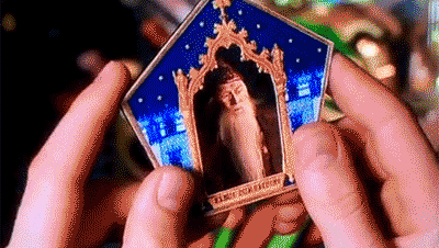 我買巧克力蛙不僅因為巧克力可以有助恢復體力,更因為我要集齊巧克力蛙卡片!巧克力蛙卡片、上面印有許多著名男巫和女巫的照片和簡介,在每個巧克力蛙的包裝裏都會有一張隨機的卡片。對了,拆開包裝袋時要小心它跳走,它可跑得比誰都快。