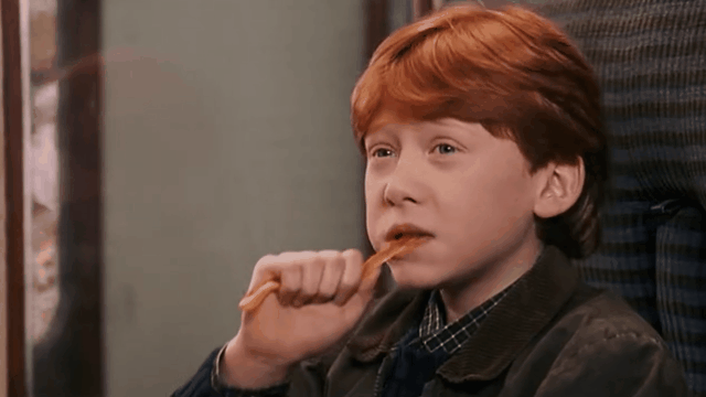 跟多數人一樣,我第一次吃魔法世界的零食是在校車上,在霍格沃茨校車上,比比多味豆、吹寶超級泡泡糖、巧克力蛙、南瓜餡餅、坩堝蛋糕、甘草魔杖和各種稀奇古怪的零食都能買到。
