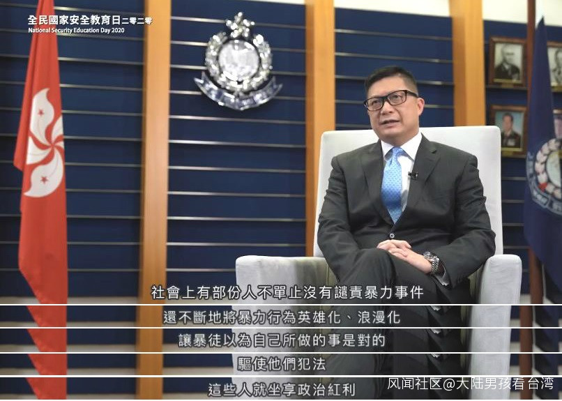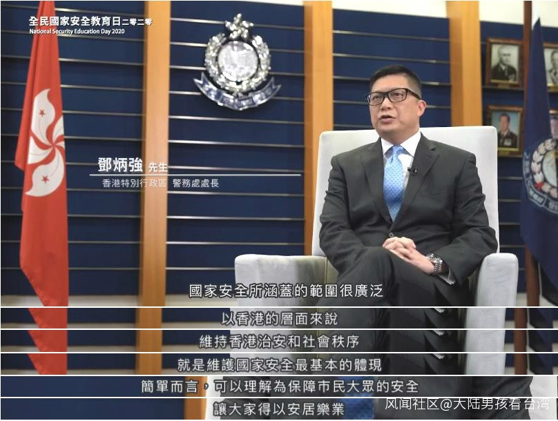 4月15日是國家第五個“全民國家安全教育日”,香港特區政府警務處處長鄧炳強當天在接受媒體採訪時表示:冀港人向暴力説不,與警隊一同守護香港。
