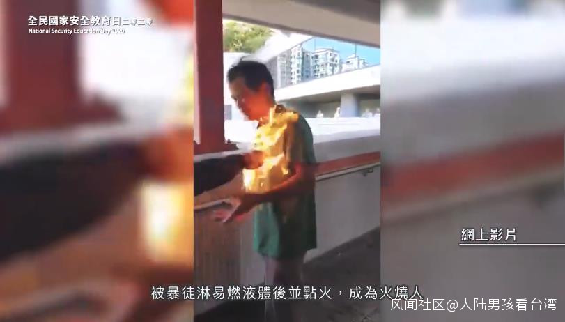 11月11日,香港馬鞍山57歲的李伯在人行天橋上遭暴徒淋易燃液後點火燒傷。