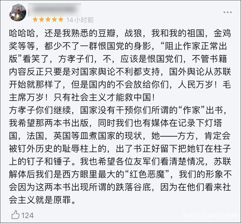 其實對於這些老“方方們”來説,我們就可以看出他們的操作邏輯:順我者言論自由,逆我者“極左”一星。