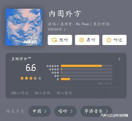 可是,不知道從什麼時候開始,就陸續出現有人給這首歌打1星的情況。在有3000多人評分時,《內圓外方》在豆瓣的評分已經掉到了6.6分。