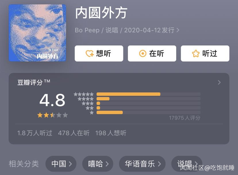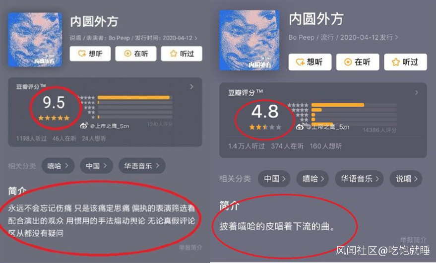當評分被刷到4.8分的時候,簡介變成了“披着嘻哈的皮唱着下流的歌曲。”