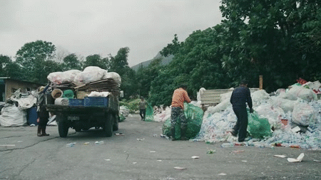 但隨着我國從2018年開始全面禁止從國外買廢塑料,原材料就不夠了。有的老闆算了筆賬,哪怕直接買全新的塑料片來造纖維,也是掙錢的。這麼一來,廢瓶子更賣不上價錢,慢慢就沒人撿瓶子了,材料的重複利用率也更低了。