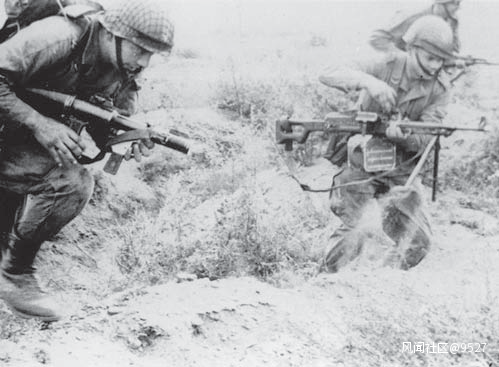 一名波蘭士兵手持波蘭製造的RPG-7W火箭筒,跟着班長衝鋒。RPG射手被安排在班組中央,以便班長控制和指揮。