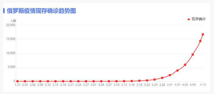 4月7日至9日,俄羅斯新增病例連續破千;4月12日,首次超過2000例;4月14日,新增數量更是達到了創紀錄的2774人。
