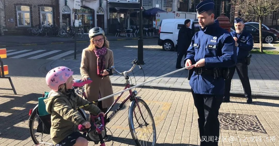 比利時警察在街上向小朋友示範1.5米有多長 (圖片來自網絡)