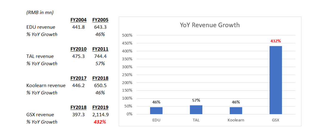 首先,香櫞機構就新東方、好未來、新東方在線和跟誰學不同時期的業績進行對比,如下圖所示。在香櫞機構看來,“鑑於當前的行業競爭情況,跟誰學的增長看起來更加令人難以置信”。
