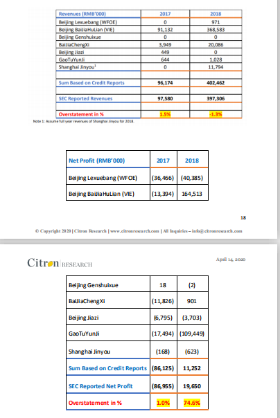 香櫞機構指出,“該報告是GSX系列報告的第1部分。因疫情下北京嚴格控制人員流動,香櫞在中國境內的一系列現場調查結果的展示被延遲。但我們很快就可以提供更多證據,用以證明欺詐的程度和學員刷單背後的機制”。