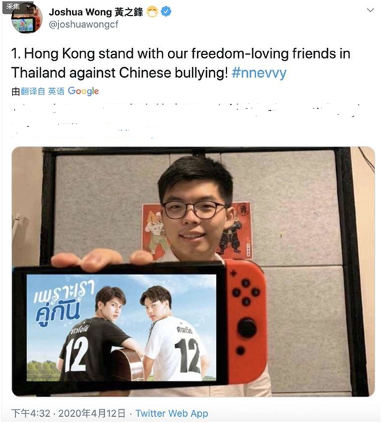 “大台”們不失時機地跟上引導指揮,“港獨”分子黃之鋒連發數條推特支持“泰國網友”的反華言論,而自由時報也跳出來為罵戰煽風點火。
