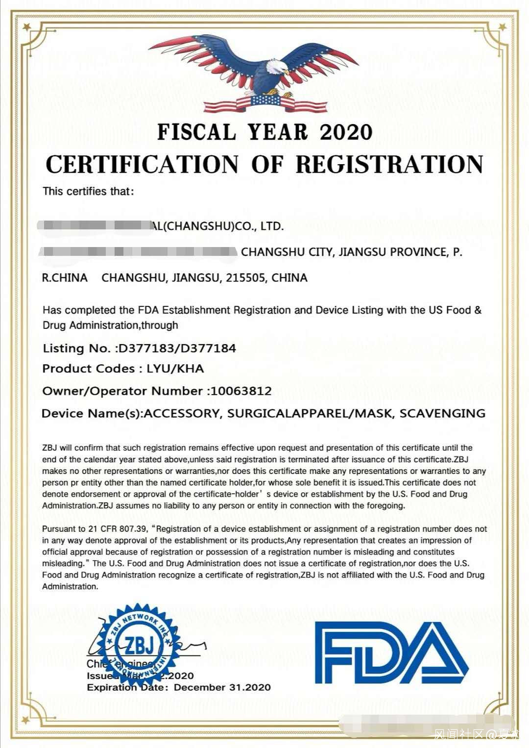 如果説你把7天投產當成是“虞山速度”的話,還有一項速度讓大家瞠目結舌:產品認證速度。從口罩投產到拿到FDA認證,你認為需要多長時間?虞山的答案是:28天。沒錯,四周;沒錯,美國食品和藥物管理局(FDA)的醫療防護用品認證。