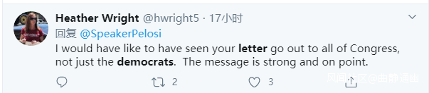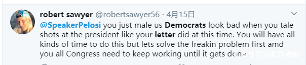 網友評論:@佩洛西,你用這封信指責總統只會讓民主黨人看起來很糟糕。您有時間幹這個不如先去解決當下的問題,而且你們國會所有的人都需要繼續努力,直到把所有的問題都解決了。