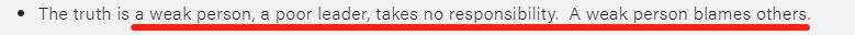 一個軟弱的人,一個可憐的領導,不承擔任何責任。只有弱者總是責怪別人。
