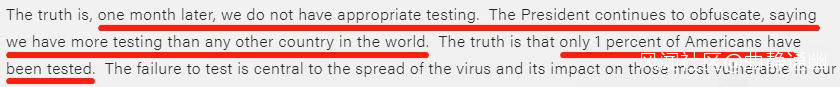 我們在3月份沒有完成必要的檢測 ,儘管特朗普反覆聲稱有;甚至現在,我們也沒有足夠的檢測、口罩、個人防護用品和必要的設備 ,這造成了不必要的死亡和痛苦。