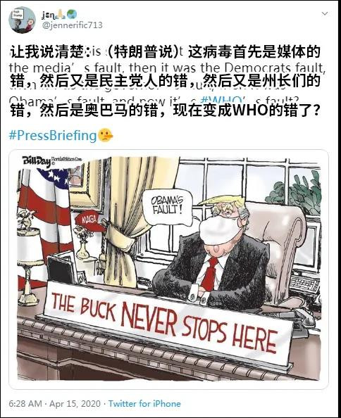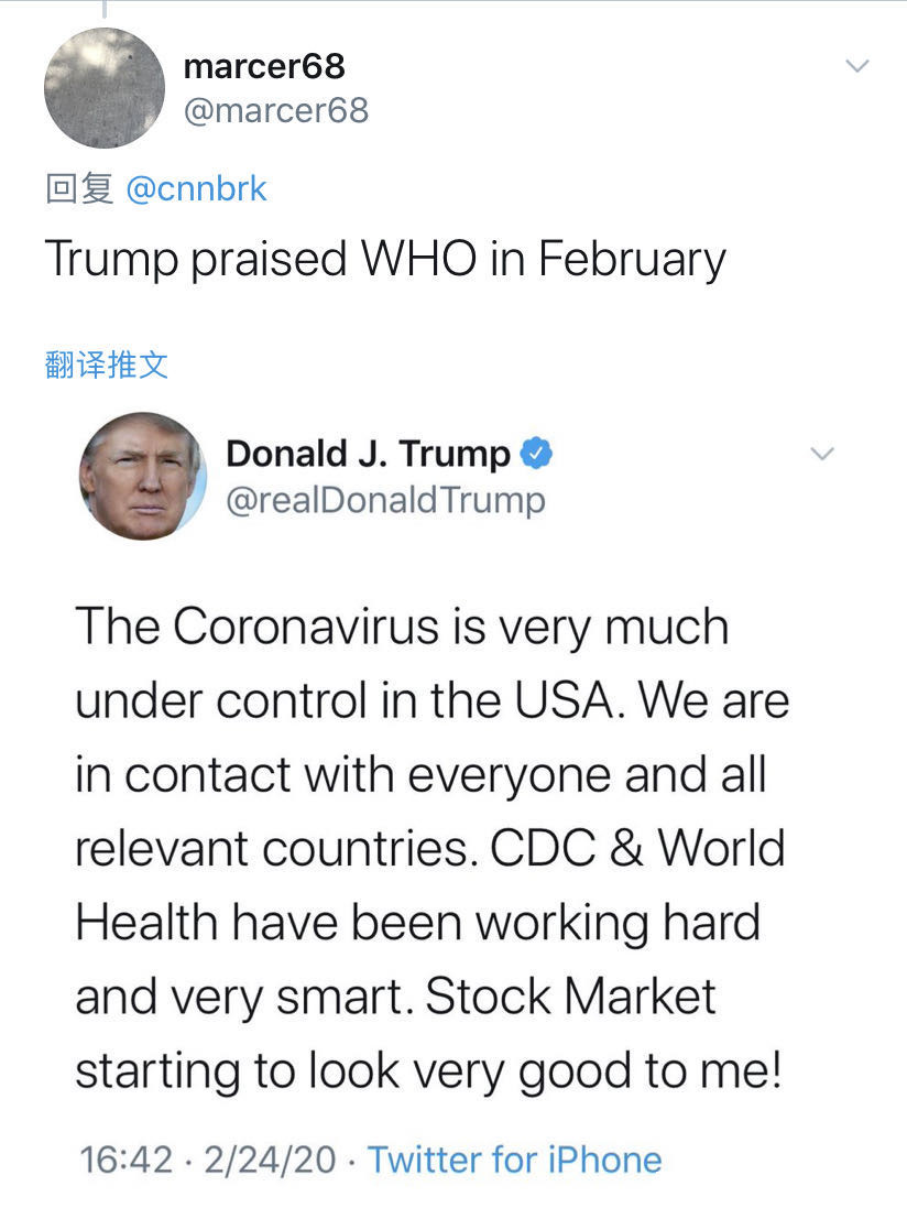 另外,還有網友翻出了舊賬,指出特朗普曾在2月份誇獎世衞組織舉措妥當。那麼,“為什麼現在又改口指責世衞組織呢?”