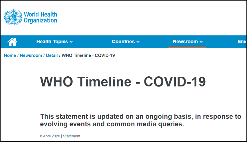 然而,世衞組織於4月8日還在網站發表了詳細的時間點,公開了該機構一系列緊密詳細的應對措施。