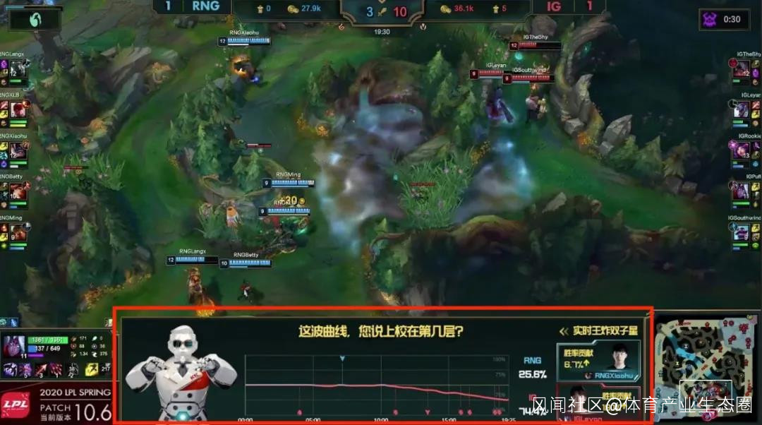 那麼品牌主的權益,在電競線上賽中表現如何?我們先拆解了鬥魚直播上2020LPL春季線上賽RNG VS IG 的一局比賽,初步瞭解了LPL線上賽的一些廣告玩法。
