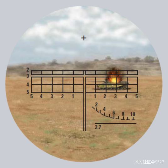 透過RPG-7的分劃板,可以看到火箭彈命中點與目標的偏移量。