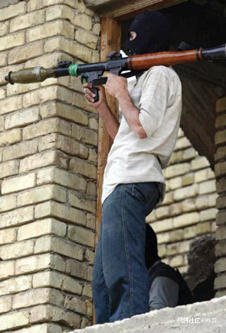 2008年在巴士拉,一名馬赫迪軍民兵在操作一具RPG-7。發射筒上裝填了一枚高爆殺傷彈。從左肩射擊很不方便,很難瞄準。