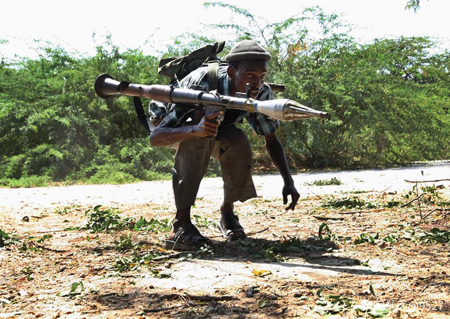 在2009年對非洲聯盟維和部隊採取的一次行動中,一名索馬里伊斯蘭教戰士攜帶RPG-7火箭筒在動盪不安的摩加迪沙進入陣地。