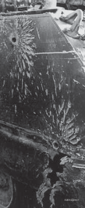 越戰時這輛M113A1裝甲運兵車的發動機艙上的彈孔可能是57毫米無後座力炮也可能是被RPG-7命中的,很可能是前者。然而結果和外觀上卻大體相同。