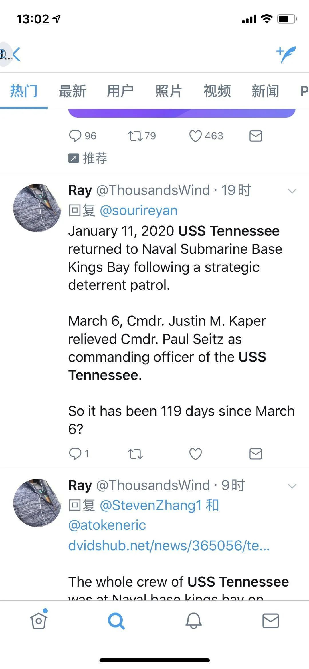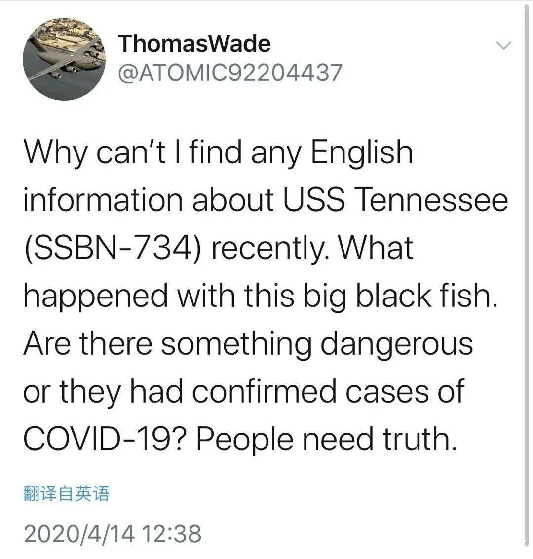 類似疑問在推特上引起了不少用户的追問,而這個關鍵詞就是“‘田納西’號核潛艇”。