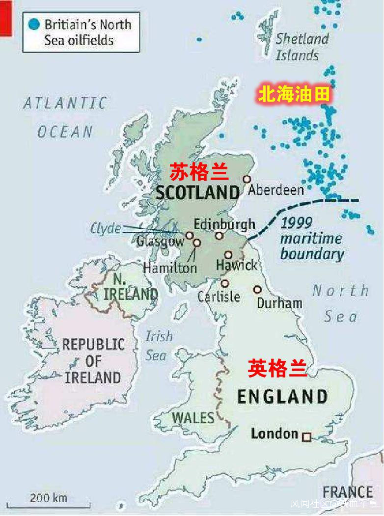 北海油田是屬於蘇格蘭的,但是北海油田的收入卻要交給英國政府,然後英國政府根據經濟情況,分給其他的地區——蘇格蘭只能得到很少的一部分。