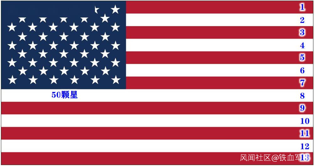 其中,13條槓其實代表了當初美國從英國殖民地獨立出來的那13個州;50顆星代表50個州。