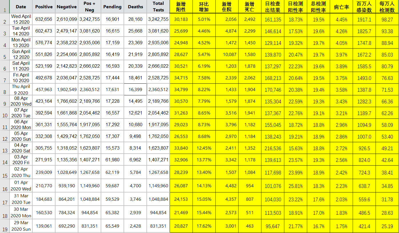 4月15日美國(並各州)疫情數據更新(紐約市單列4059例‘可能病亡’)_風聞