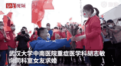 在雷神山醫院休艙儀式前,武漢大學中南醫院重症醫學科胡志敏,向同科室女友求婚,這樣的狗糧請給我來一頓。