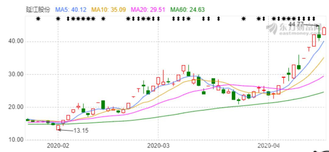 延江股份52個交易日大漲188%,換手率高達1471%。4月15日晚間,延江股份發佈股票交易異常波動公告稱,公司為積極響應新冠疫情需求,公司利用深耕無紡布產業的資源優勢,加緊研發口罩核心過濾層材料熔噴無紡布,已實現民用和醫用級熔噴布的供應,目前市場需求旺盛,對公司的經營和業績產生積極的影響。