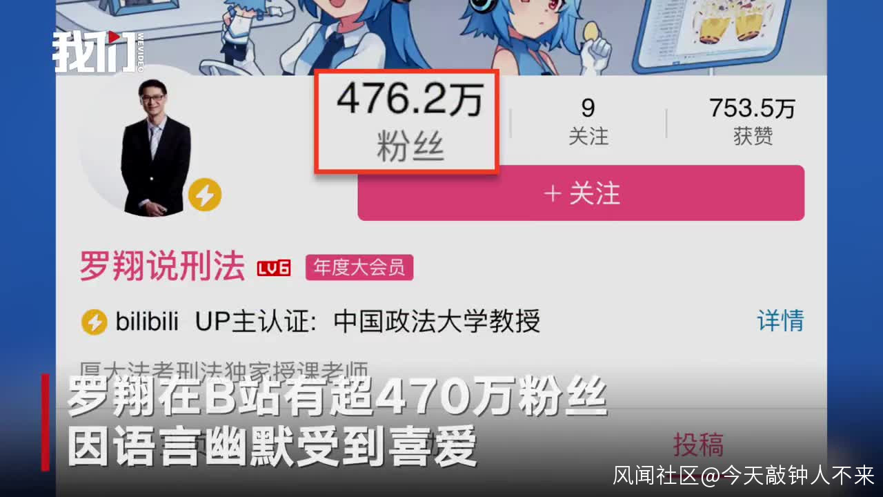 羅翔是中國政法大學教授,在B站主講法律知識。因語言幽默,收穫了超470萬粉絲。他在3月27日曾表示將加入B站視頻激勵計劃,並把該計劃全部所得捐給兒童救助基金會。計劃將每月一捐,到年底公佈明細。這一舉動引來不少網友稱讚。羅翔則表示這只是普通之舉,不必拔高。