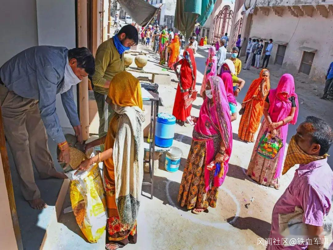 3月25日,印度開始 為期21天的全國封城。封城後,至少5千萬外來民工失業,城市失業率上升到30%,貧困人口飆升。考慮到這些原因,印度政府宣佈將給8億人分發小麥和大米,並會提供未來3個月的定量配給。