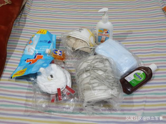 ▲ 我家儲備的部分消毒液,N95和醫用口罩