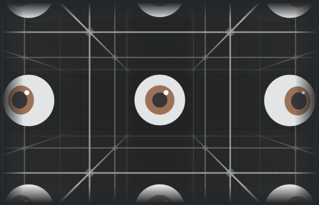 就像二維環面中的生物生活在一個由無數個相同的矩形房間組成的二維方陣一樣,三維環面中的生物就像生活在一個由無數個相同的立方體房間組成的三維方陣中。你會看到無數個你自己的複製品: