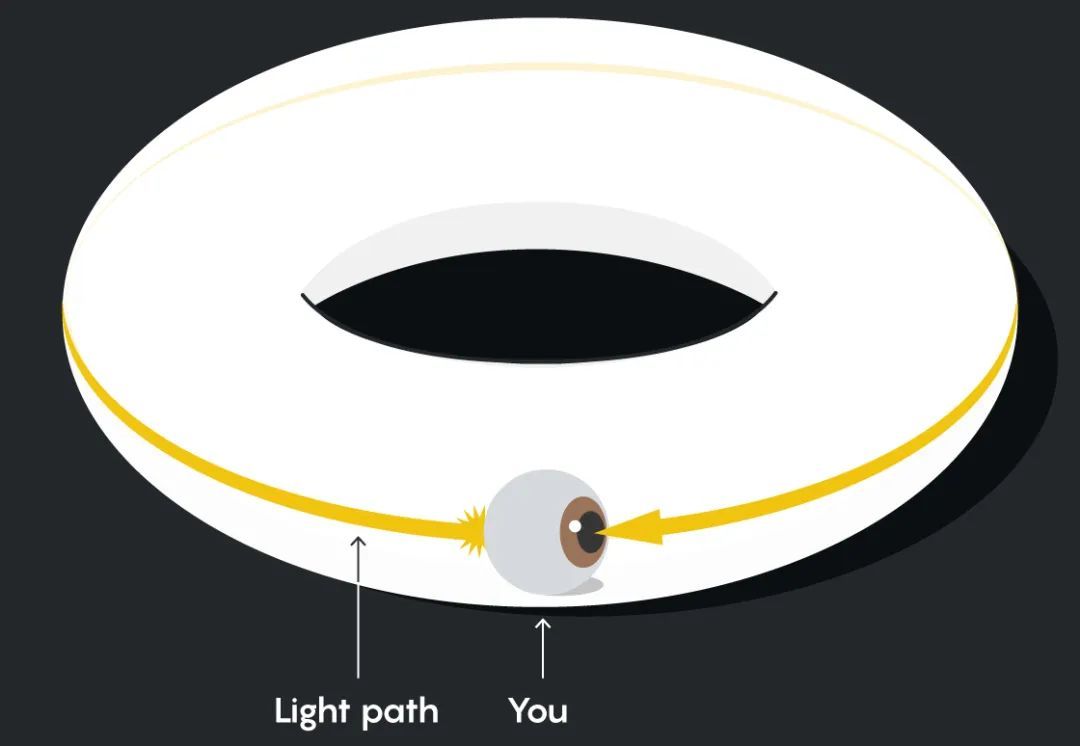 在甜甜圈上,它們對應着許多不同的迴路,通過這些迴路,光可以從你身後照回到你身上:
