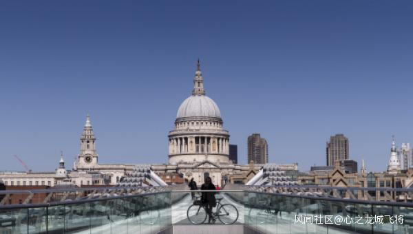 一名女子在英國倫敦的千禧橋上駐足,眺望遠處的聖保羅大教堂。新華社 圖