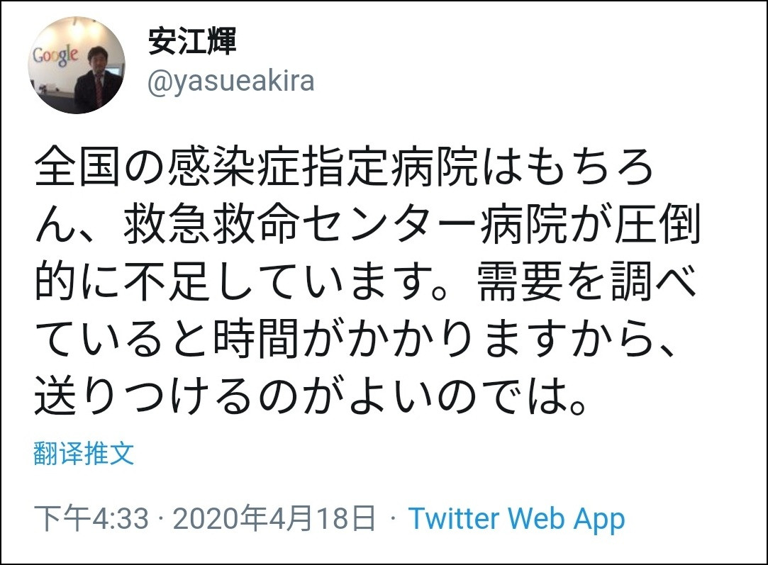 提到孫正義提供的防護物資可能不安全的還有這位: