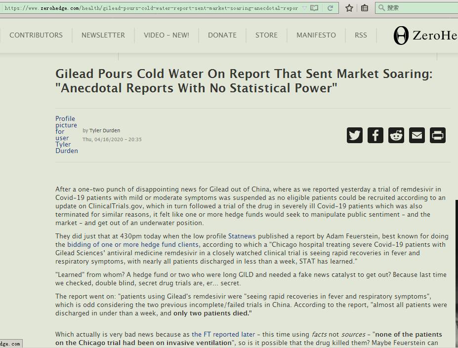 [2]Gilead Pours Cold Water On Report That Sent Market Soaring: “Anecdotal Reports With No Statistical Power”:https://www.zerohedge.com/health/gilead-pours-cold-water-report-sent-market-soaring-anecdotal-reports-no-statistical-power?from=timeline&isappinstalled=0