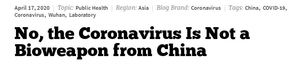 《國家利益》指出,新冠病毒在中國武漢蔓延後不久,美國《華盛頓時報》就散佈了毫無根據的謠言,稱病毒來自一間研究機構。這篇報道援引所謂以色列前軍事情報官員丹尼·肖漢姆(Dany Shoham)的話稱,“病毒可能來自於與中國生物武器計劃有關的項目”,隨後,《紐約郵報》重複了這一虛假主張,至此,陰謀論開始散播開來。