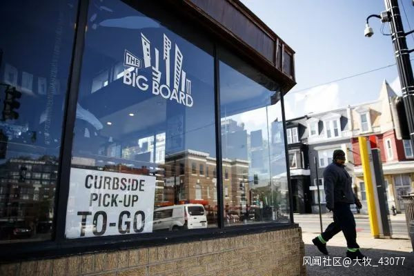 ▲4月16日,在美國華盛頓,一家餐廳的窗前擺放着“外賣”標識。新華社發(沈霆攝)